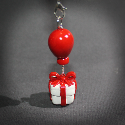 This pendant is made with Sculpey clay and painted with acrylic paints. The balloon measures at around 2cm tall (0.78inches) and 1.5cm wide (0.59inches); the present measures at around 2cm tall (0.78inches) and 1.5cm wide (0.59inches); the length of the pendant as a whole is 5cm (1.96inches), each one varies in size as they are handmade.