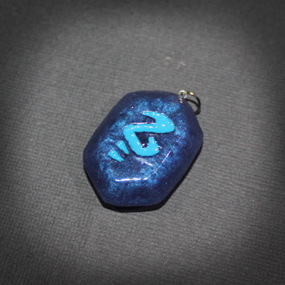 Catalyst the Protector This pendant is made with resin. It measures at around 3.5cm tall (1.37inches) and around 2.5cm wide (0.98inches).