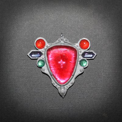 This pendant is made with sculpey and resin gems. It measures at around 5cm tall (1.96inches), and around 5.5cm wide (2.16inches).