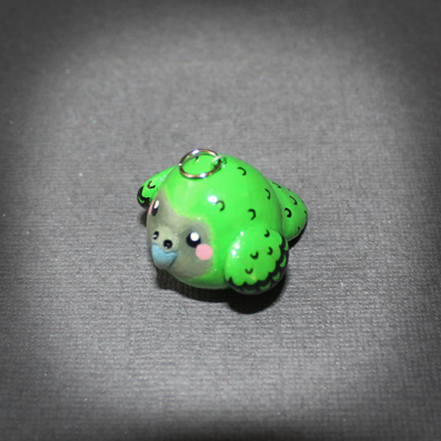 Kakapo This pendant is made with sculpey. It measures at around 2.5cm tall (0.98inches), and around 3cm wide (1.18inches).