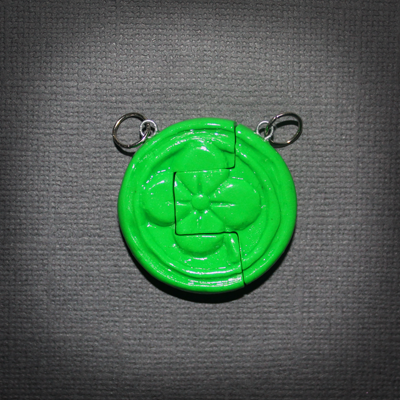 This set of pendants are made with green sculpey and are cut with a special cutter that I have hand made. They measure at around 3cm in diameter (1.18inches) and around 0.5cm thick (0.19inches).