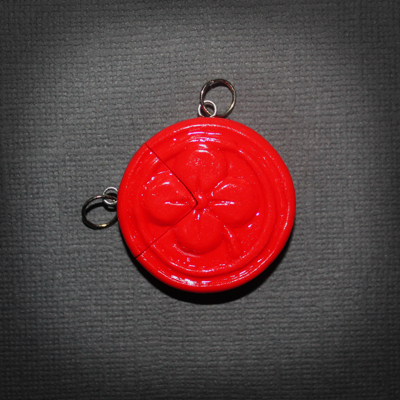 This set of pendants are made with red sculpey and are cut with a special cutter that I have hand made. They measure at around 3cm in diameter (1.18inches) and around 0.5cm thick (0.19inches).