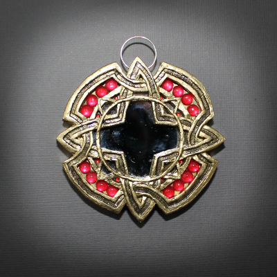 This bracelet is made with resin, resin gems, and a mirror. It measures at around 7cm tall (2.75inches), around 7cm wide (2.75inches), and around 1cm thick (0.39inches).