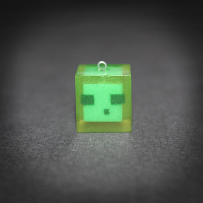 This pendant is made with resin and sculpey. It measures at around 1.7cm tall (0.66inches) and around 1.7cm wide (0.66inches). This piece glows-in-the-dark, please look for it in my store to see photos of the effect!