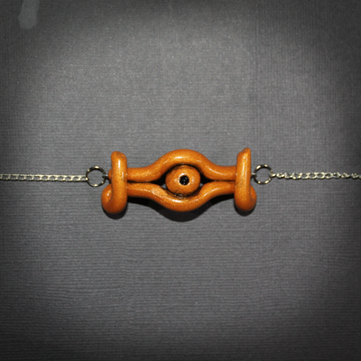 This pendant is made with gold sculpey clay acrylic paint. It measures at around 3cm tall (1.18inches) and around 2.5cm wide (0.98inches), each one varies in size as they are handmade.