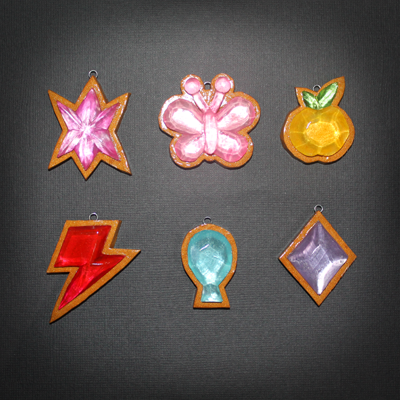 The pendants are made with resin and sculpey. They measure at around 3.5cm tall (1.37inches) and 4.5cm tall (1.77inches), and around 2.5cm wide (0.98inches) and 4cm wide (1.57inches).