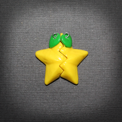 This pendants are made with Sculpey. Together they measure at around 3cm tall (1.18inches) and around 3cm wide (1.18inches), each one varies in size as they are handmade.