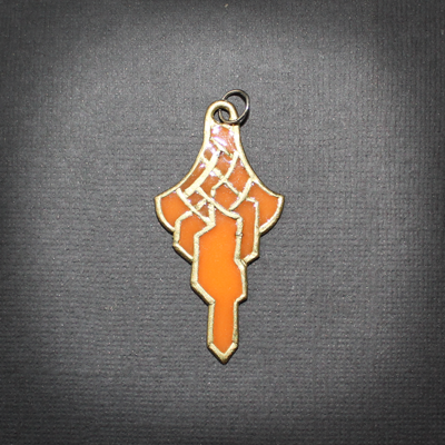 These are made with resin. They measure at around 5cm tall (1.96inches), around 2.5cm wide (0.98inches), and around 1mm thick (0.03inches).