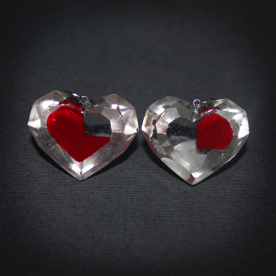 This pendants are made with resin and red paint. they measure at around 2.5cm tall (0.98inches), around 3.3cm wide (1.29inches) and around 1.5cm thick (0.59inches).
