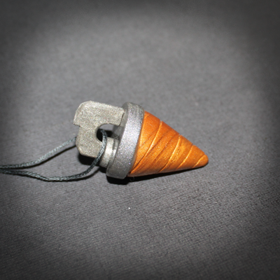 This pendant is made with gold and silver sculpey clay. It measures at around 5cm tall (1.96inches), around 2.5cm wide (0.98inches) and 2.5cm wide (0.98inches).